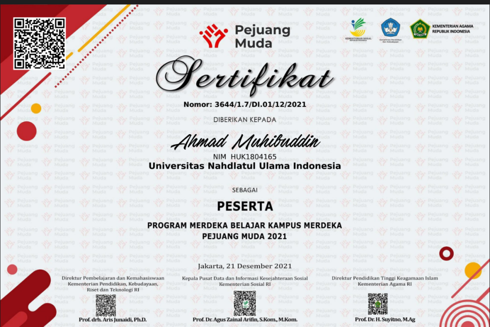 Ahmad Muhibuddin raih Penghargaan Peserta Program Merdeka Belajar Kampus Merdeka 2021