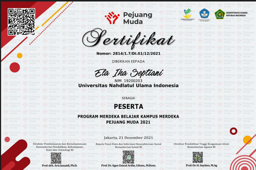 Ela ika Septiani raih Penghargaan Program Merdeka Belajar Kampus Merdeka Pejuang Muda 2021