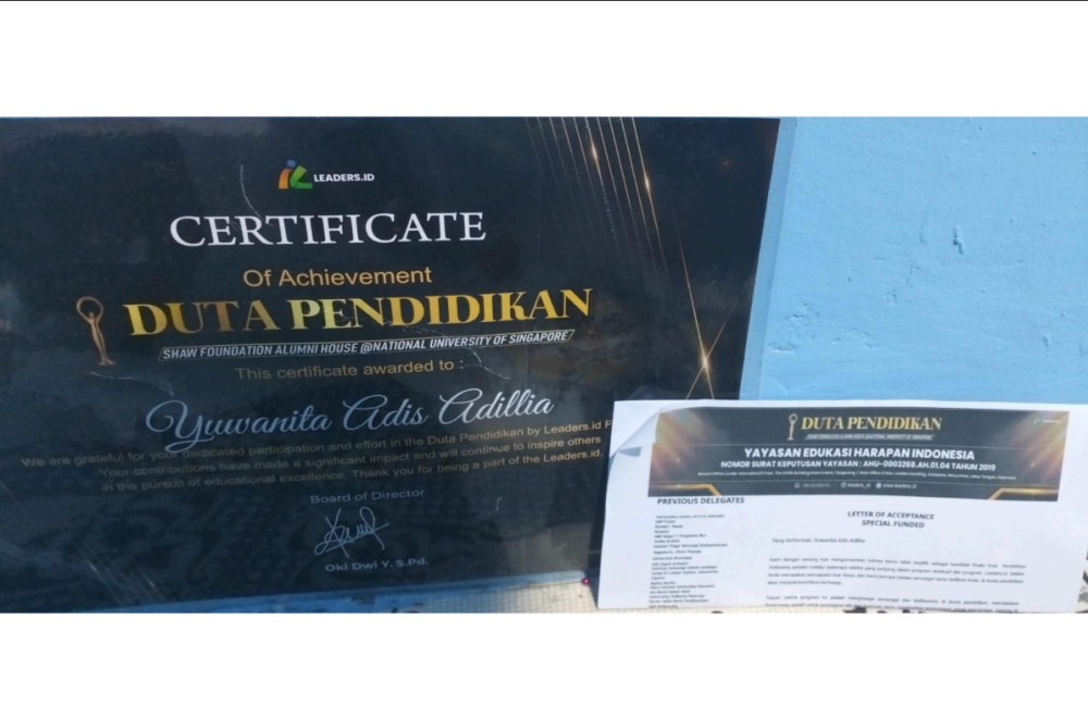 Yuwanita adis raih penghargaaan Duta Pendidikan Show Fondation Alumni Hause National Universsity of singapore