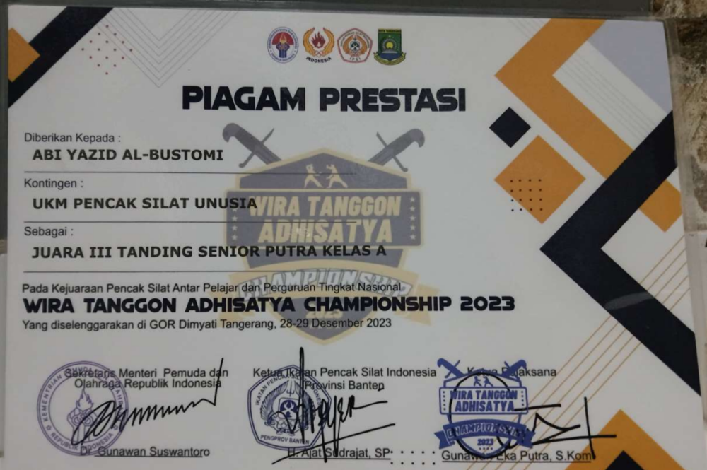 Piagam Preastasi Juara III Tanding Senior Kelas A ChampionShip 2023