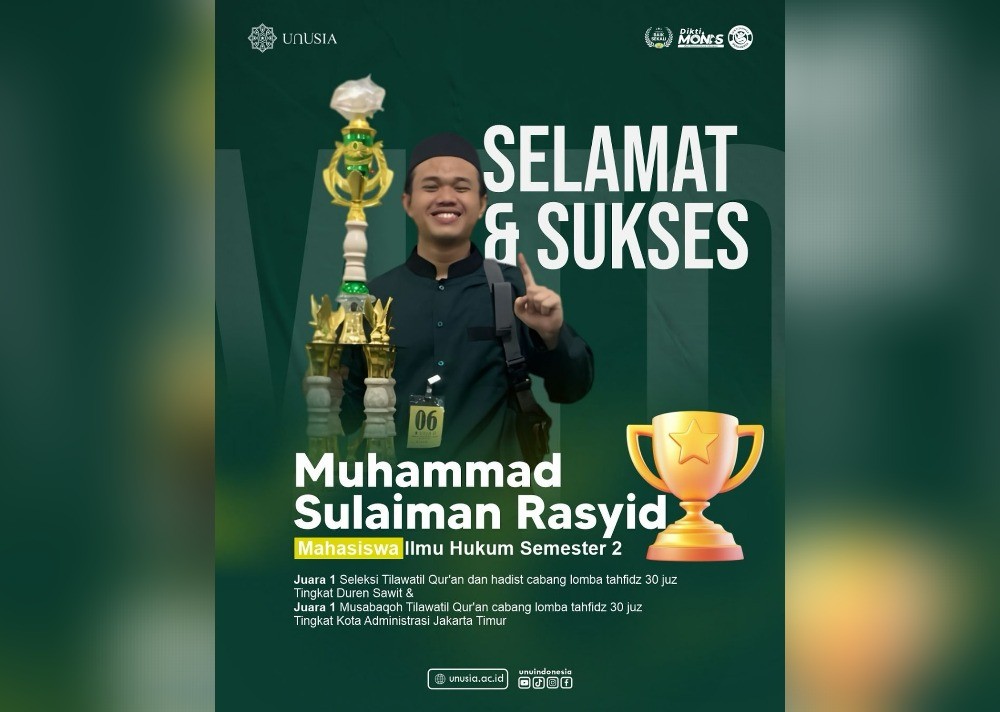 Muhammad Sulaiman Rasyid Mahasiswa UNUSIA Raih Juara 1 Tahfidz 30 Juz pada MTQ Kota Jakarta Timur