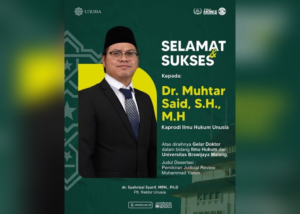 Muhtar Said Kaprodi Ilmu Hukum UNUSIA Raih Gelar Doktor