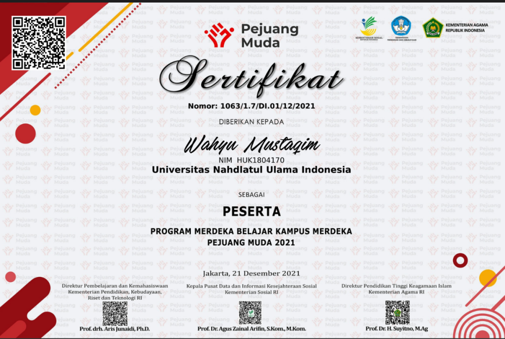 Wahyu mustaqim raih penghargaan Program Merdeka Belajar Kampus Merdeka Pejuang Muda 2021