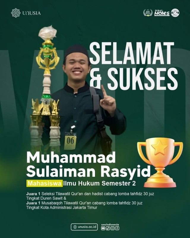 Juara 1 Musabaqoh Tilawatil Quran MTQ cabang lomba Tahfidz 30 Juz tingkat Kota Administrasi Jakarta Timur
